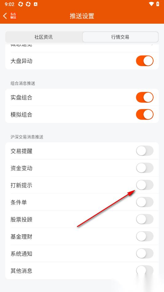 东方财富APP是一款大家平时在操作的有关于投资理财的软件,对此平时喜欢查看股市、理财的用户来说,该软件是非常有帮助的,大家可以在该软件中进行交易,并且可以设置交易提醒,同时还可以设置打新提示,有的用户在操作的时候接收不到打新提示推送消息,那么可能是该软件中的打新提示功能没有开启,用户需要进入到推送设置窗口中将其启用即可,但是需要完成对资金账号的绑定,才能正常启用该功能,此外用户可以设置条件单等相关功能,具体的教程方法用户可以参考下方的步骤教程。