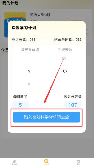 1、首先明确每日目标量(建议20-50词),系统会根据记忆曲线自动安排新词学习和旧词复习。