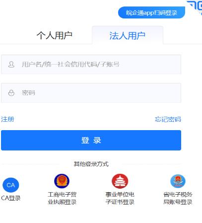 皖企通app怎么登录,安徽政务服务网”用户分为两类,一类为“个人用户”,一类为“法人用户”。两种用户登录方式不同,下面为大家介绍一下这两种注册登录方式的介绍。