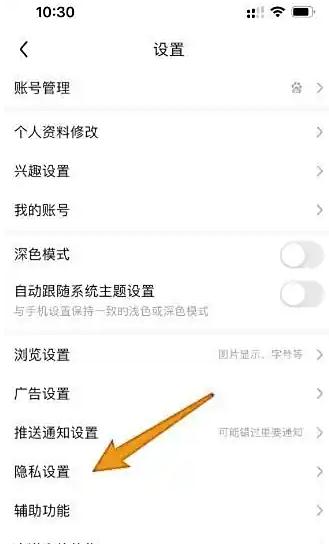 进入设置页面,点击【隐私设置】选项