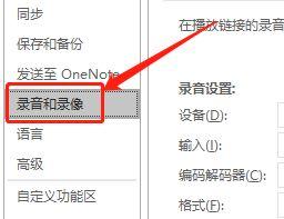 3、在弹出的窗口界面中,点击左侧栏中的"录音和录像"选项。