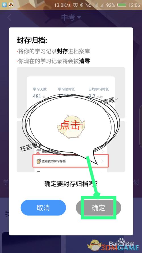 5、点击确定后,屏幕上面会有提示,归档学习记录成功,然后学习设置新的学习目标。如图所示