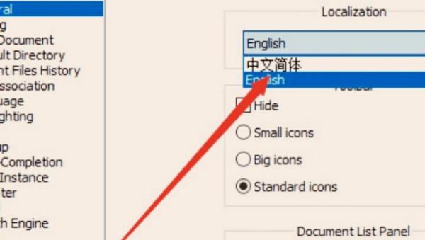 3、在打开的窗口界面中,找到右侧中的"localization"一栏,点击选项框的下拉按钮,将其选择为"中文简体"即可。
