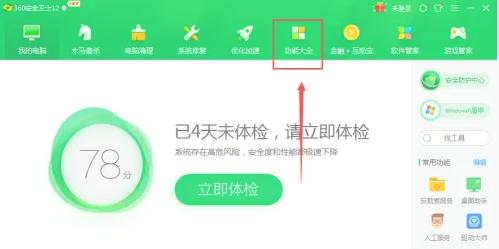1、双击进入软件,点击上方菜单栏中的"功能大全"选项。