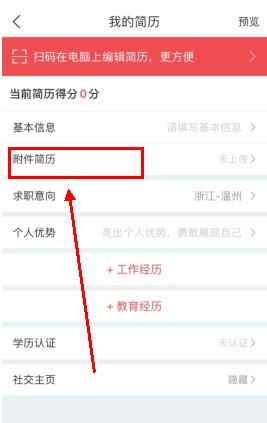 1、首先在简历界面点击附件简历